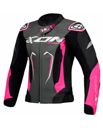 IXON GIUBBOTTO PELLE LADY VORTEX 3 NERO-ROSA-BIANCO