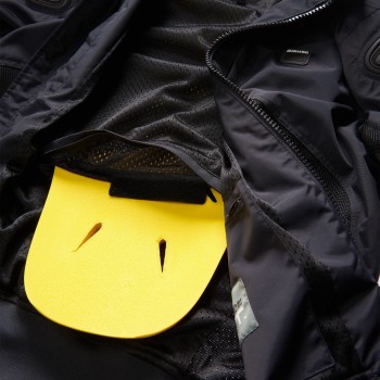 Giacca realizzata in double-layer in nylon idrorepellente. Inserti in mesh per un maggiore passaggio d'aria. Predisposta per protezioni al gomito e spalle (incluse), e alla schiena (non incluse). Cerniera frontale con doppio cursore, fondo in maglina e chiusura con bottone a pressione. Colletto rivestito internamente in maglina per un maggior comfort. Polsino con ghetta interna e chiusura regolabile con bottone a pressione. 2 tasche frontali e taschino petto apribili tramite zip. Taschino interno invisibile e tasca portadocumenti interna.