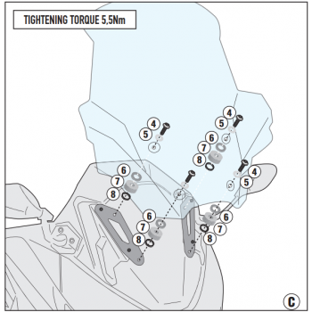 Parabrezza specifico trasparente 84,5 x 65,5 cm (H x L) da abbinare agli attacchi D267KIT / 21,5 cm più alto dell'originale
