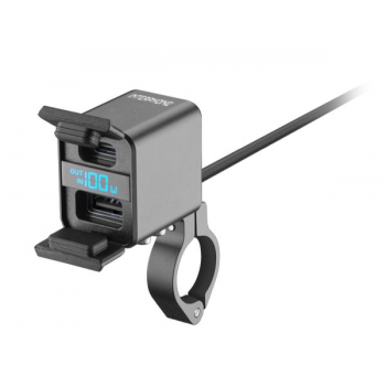 Adattatore a 12 V con connettore DIN, a doppia presa USB, che consente di ricaricare due dispositivi elettronici con cavo di ricarica USB. Dotato di cappuccio di protezione, è pratico e senza fili, ha una doppia porta USB in alluminio (massimo 4,2 A) e voltmetro incorporato.